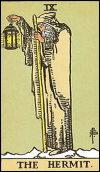 The Hermit in reverse can indicate a struggle to connect with your inner self. Perhaps you are dissatisfied in life without knowing why. Maybe you find yourself isolated from your friends and loved ones. Take time for some quiet contemplation, whether it comes in the form of mediation, journaling, or a solitary walk through nature. Know that you have inner wisdom while remaining open to advice from others. Seek out a mentor, someone you look up to, or a therapist if that is available to you. To address feelings of isolation, consider that you may need to hold out your lantern so others can find their way to you.