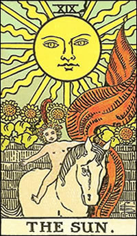 The Sun is an undeniably positive card, heralding joy and success. The child depicted in the card reminds us to enjoy the simple things in life. Do something that makes you happy, ideally something simple that doesnโt cost any money. Take a moment to reflect on what youโre thankful for and how you have positively impacted the lives of others. If things are difficult now, The Sun is here to tell you that things will get better. In the meantime, try to find a bright spot, no matter how small, in each day.